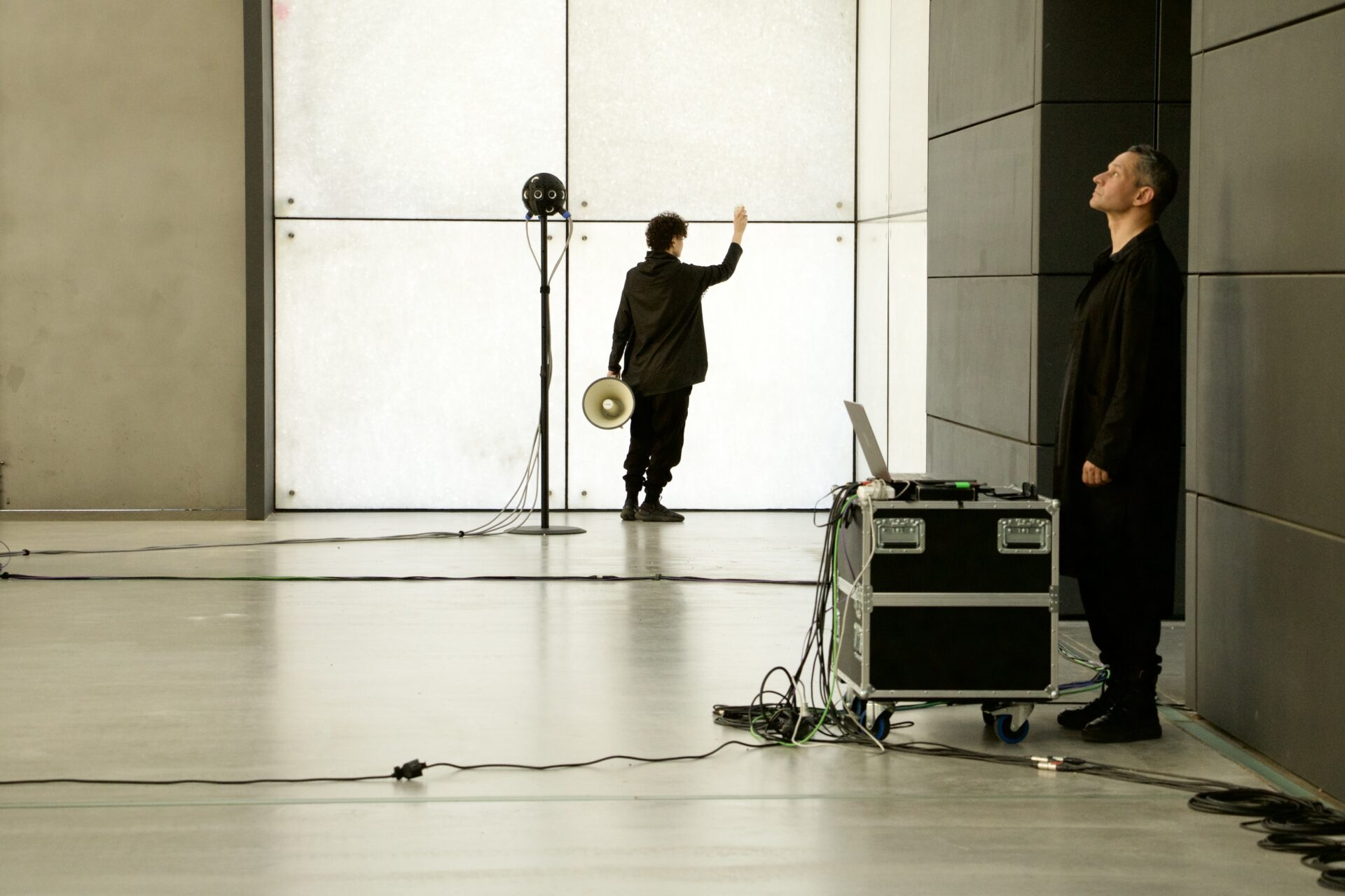 Integrale Raumthesen ist eine performative Klanginstallation, die sich mit der Erforschung von und der Sensibilisierung für Architektur als sozialen Raum beschäftigt.